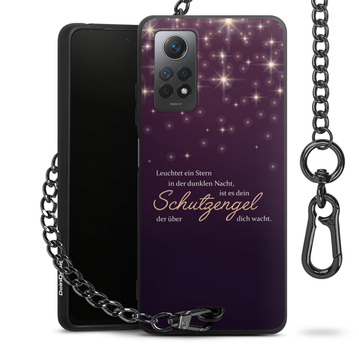 - Mattschwarze Handyhülle mit Metallkette