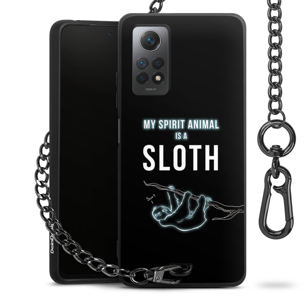 Die mattschwarze Silikon-Handyhülle besteht aus robustem TPU (thermoplastisches Polyurethan). Sie ist flexibel und schützt Dein Smartphone vor Stößen und Kratzern. Die Kette sowie der Karabinerhaken sind aus Metall in Gunmetal-Optik gefertigt. Für dieses Produkt kommen ausschließlich TÜV-geprüfte Materialien zum Einsatz.