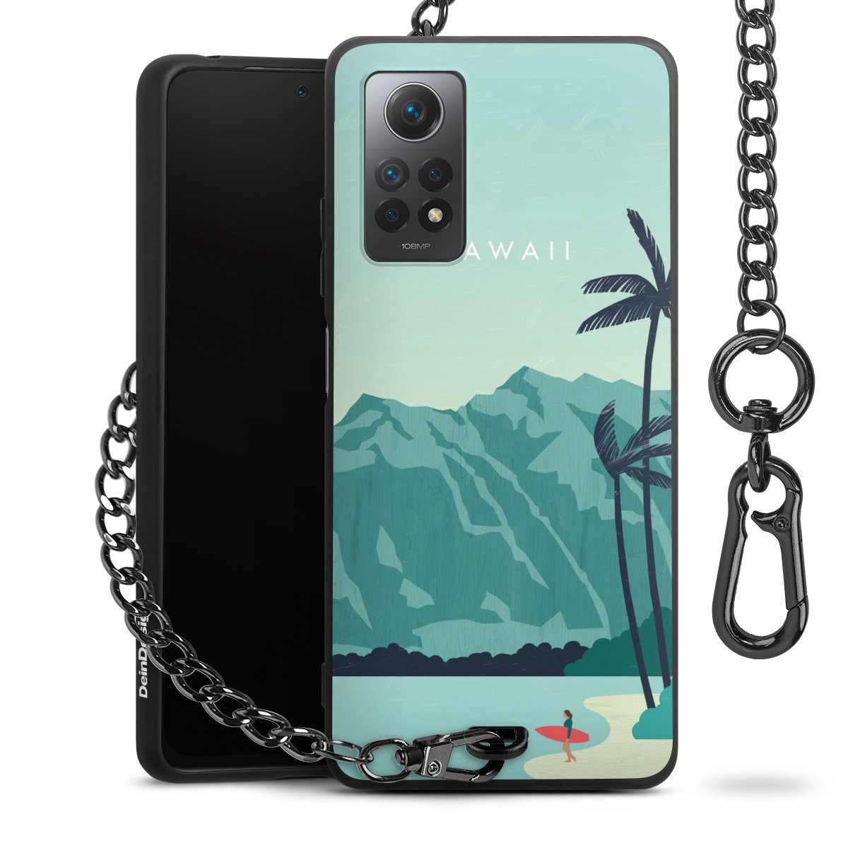 Die mattschwarze Silikon-Handyhülle besteht aus robustem TPU (thermoplastisches Polyurethan). Sie ist flexibel und schützt Dein Smartphone vor Stößen und Kratzern. Die Kette sowie der Karabinerhaken sind aus Metall in Gunmetal-Optik gefertigt. Für dieses Produkt kommen ausschließlich TÜV-geprüfte Materialien zum Einsatz.