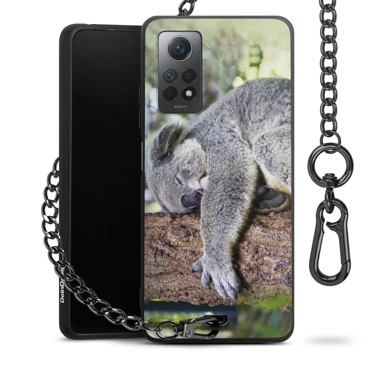 • Mattschwarze Handyhülle mit Metallkette