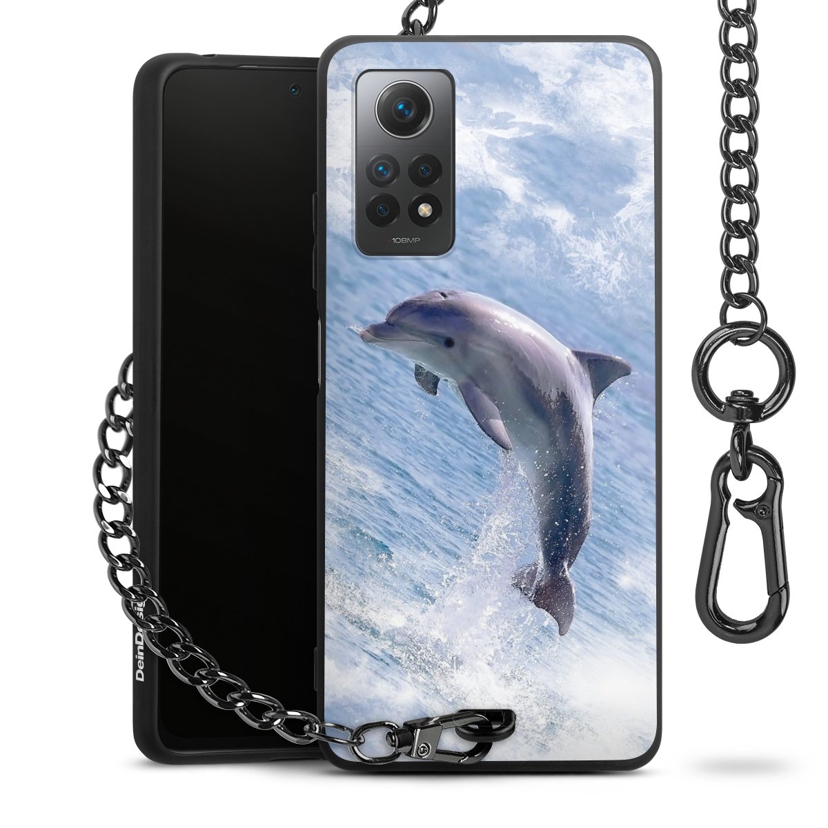 • Mattschwarze Handyhülle mit Metallkette