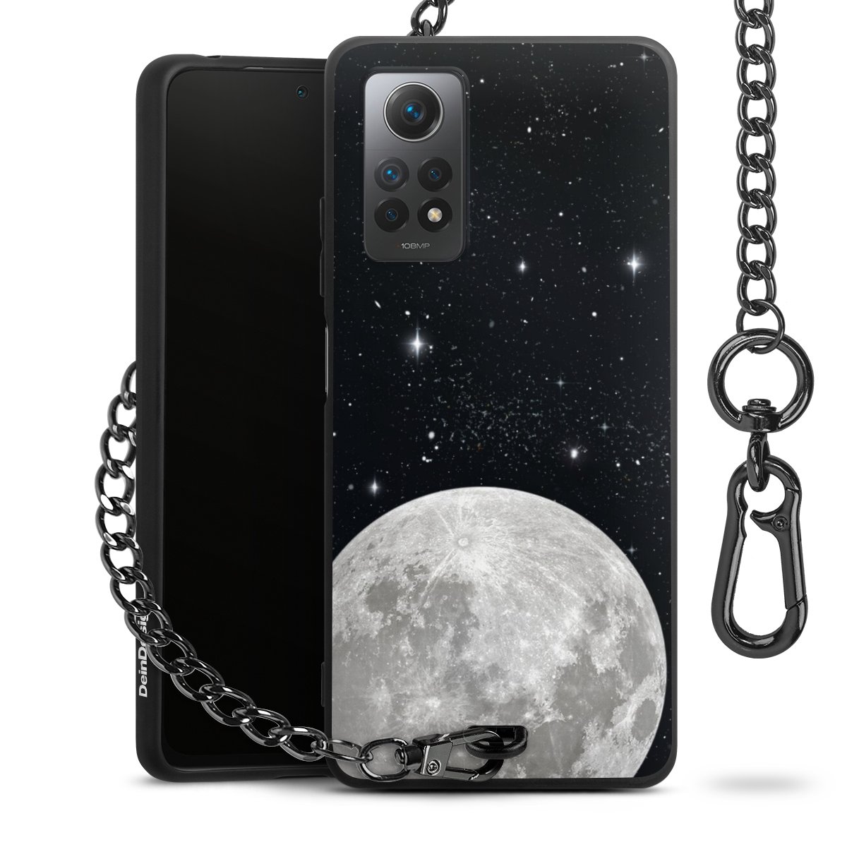 • Mattschwarze Handyhülle mit Metallkette