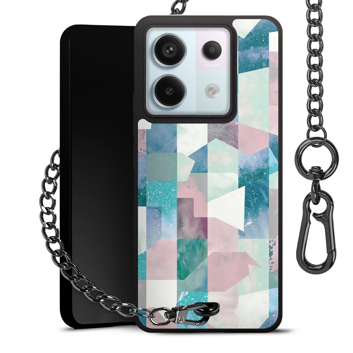 • Mattschwarze Handyhülle mit Metallkette