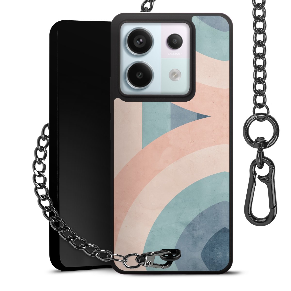 • Mattschwarze Handyhülle mit Metallkette