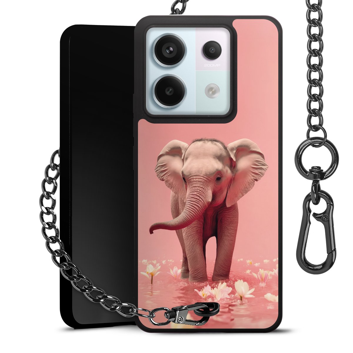 • Mattschwarze Handyhülle mit Metallkette