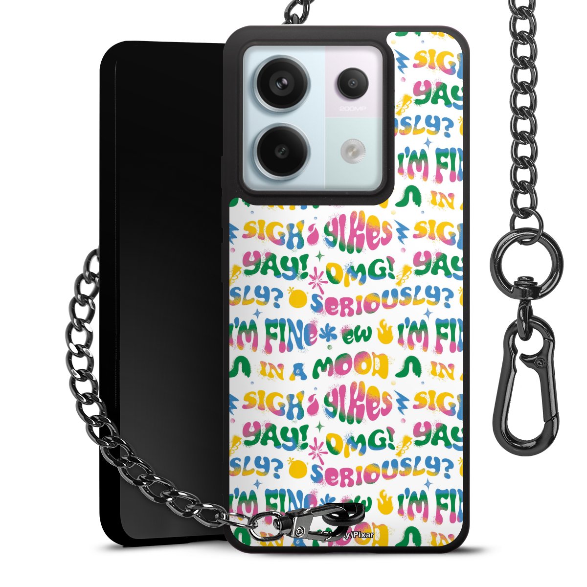 Die mattschwarze Silikon-Handyhülle besteht aus robustem TPU (thermoplastisches Polyurethan). Sie ist flexibel und schützt Dein Smartphone vor Stößen und Kratzern. Die Kette sowie der Karabinerhaken sind aus Metall in Gunmetal-Optik gefertigt. Für dieses Produkt kommen ausschließlich TÜV-geprüfte Materialien zum Einsatz.