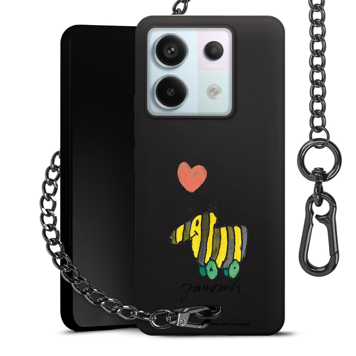 Die mattschwarze Silikon-Handyhülle besteht aus robustem TPU (thermoplastisches Polyurethan). Sie ist flexibel und schützt Dein Smartphone vor Stößen und Kratzern. Die Kette sowie der Karabinerhaken sind aus Metall in Gunmetal-Optik gefertigt. Für dieses Produkt kommen ausschließlich TÜV-geprüfte Materialien zum Einsatz.