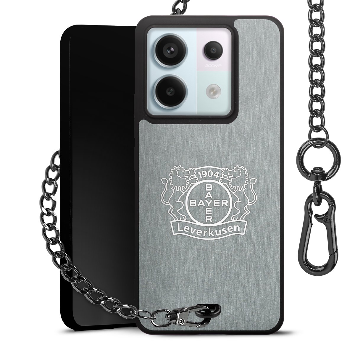 Die mattschwarze Silikon-Handyhülle besteht aus robustem TPU (thermoplastisches Polyurethan). Sie ist flexibel und schützt Dein Smartphone vor Stößen und Kratzern. Die Kette sowie der Karabinerhaken sind aus Metall in Gunmetal-Optik gefertigt. Für dieses Produkt kommen ausschließlich TÜV-geprüfte Materialien zum Einsatz.