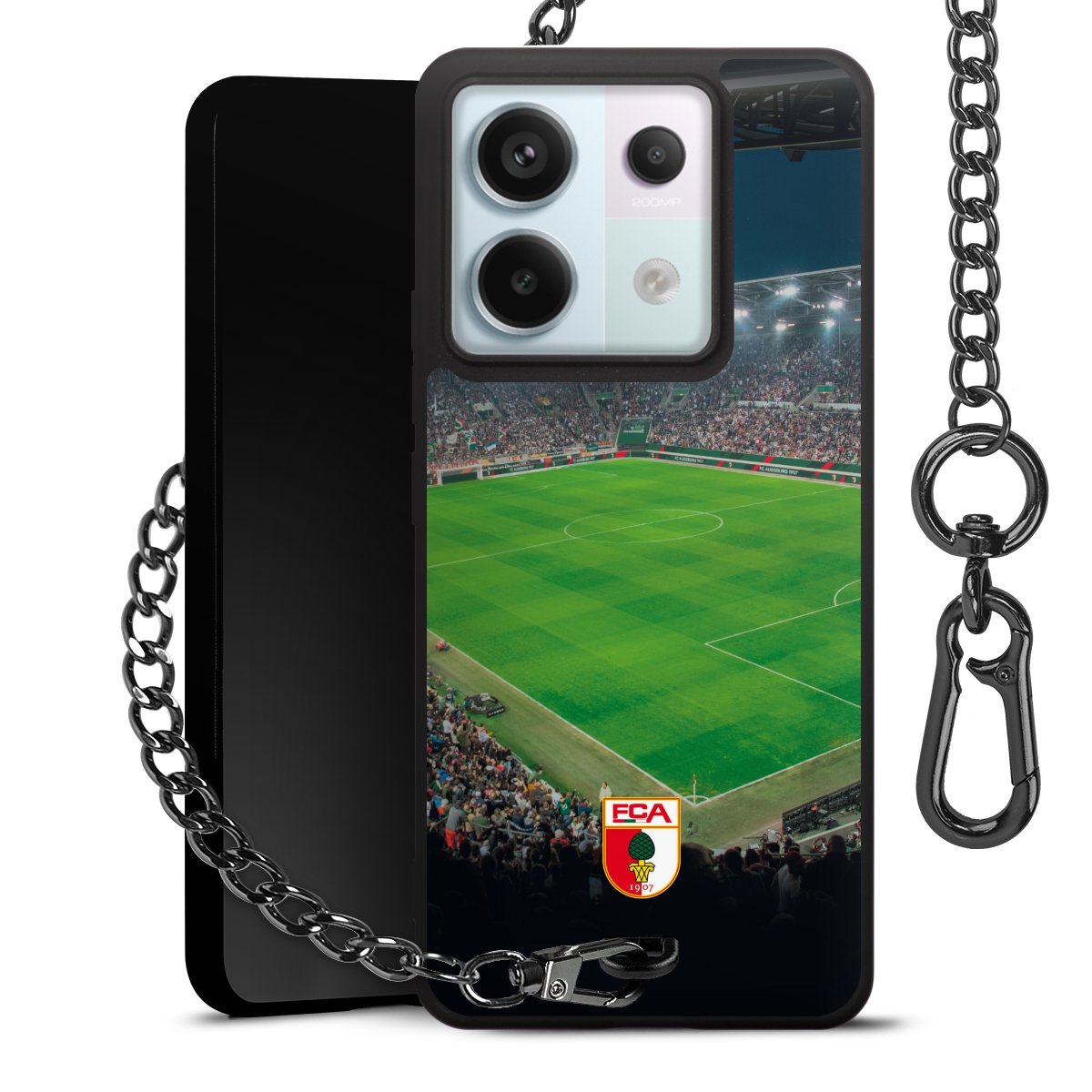 • Mattschwarze Handyhülle mit Metallkette