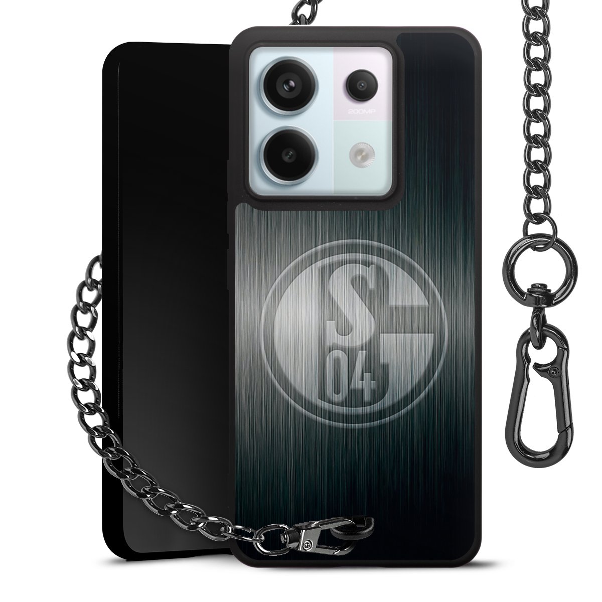 • Mattschwarze Handyhülle mit Metallkette