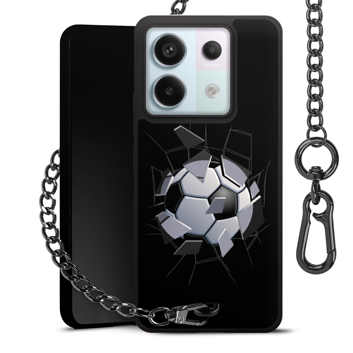 - Mattschwarze Handyhülle mit Metallkette