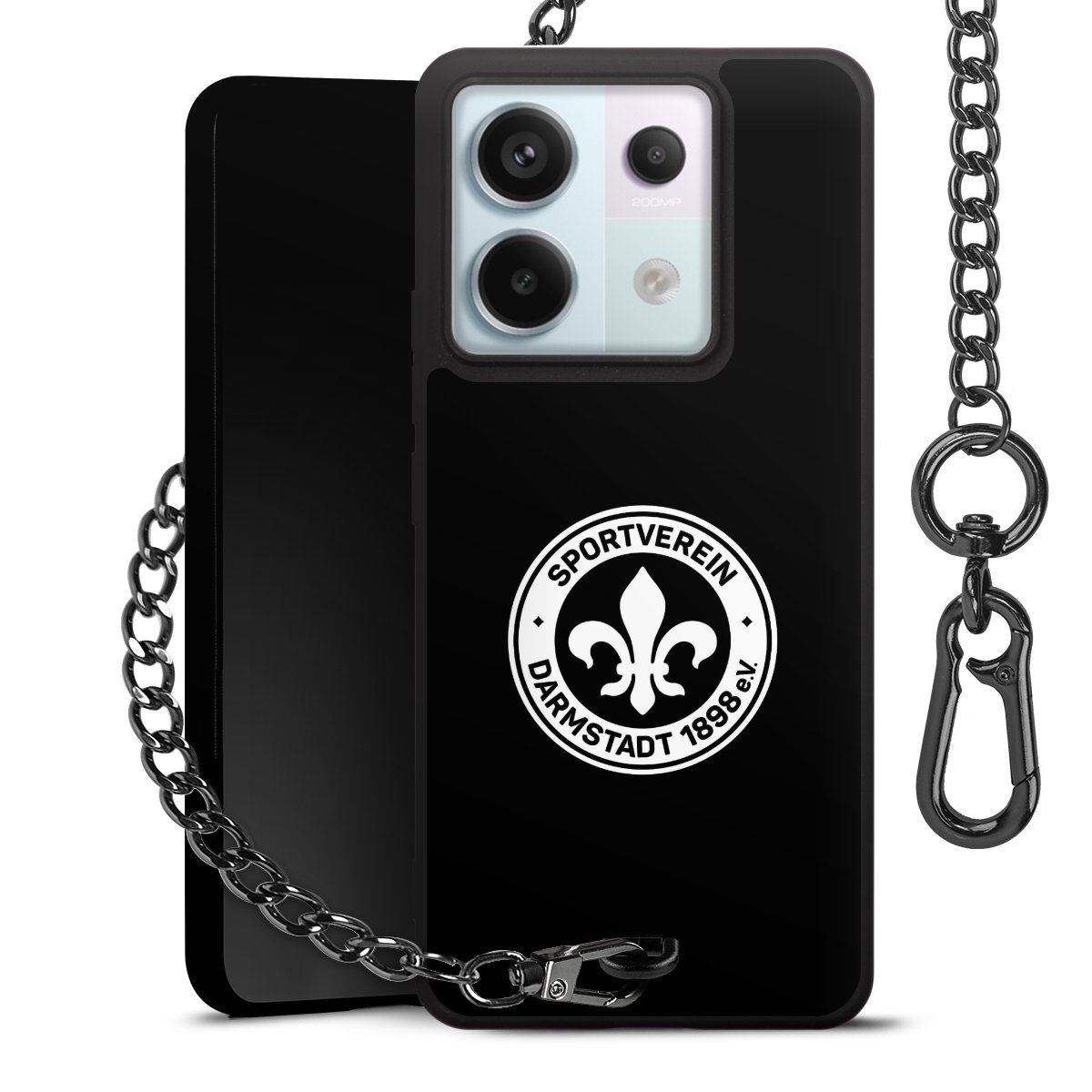 Die mattschwarze Silikon-Handyhülle besteht aus robustem TPU (thermoplastisches Polyurethan). Sie ist flexibel und schützt Dein Smartphone vor Stößen und Kratzern. Die Kette sowie der Karabinerhaken sind aus Metall in Gunmetal-Optik gefertigt. Für dieses Produkt kommen ausschließlich TÜV-geprüfte Materialien zum Einsatz.