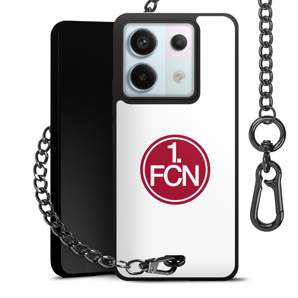 • Mattschwarze Handyhülle mit Metallkette