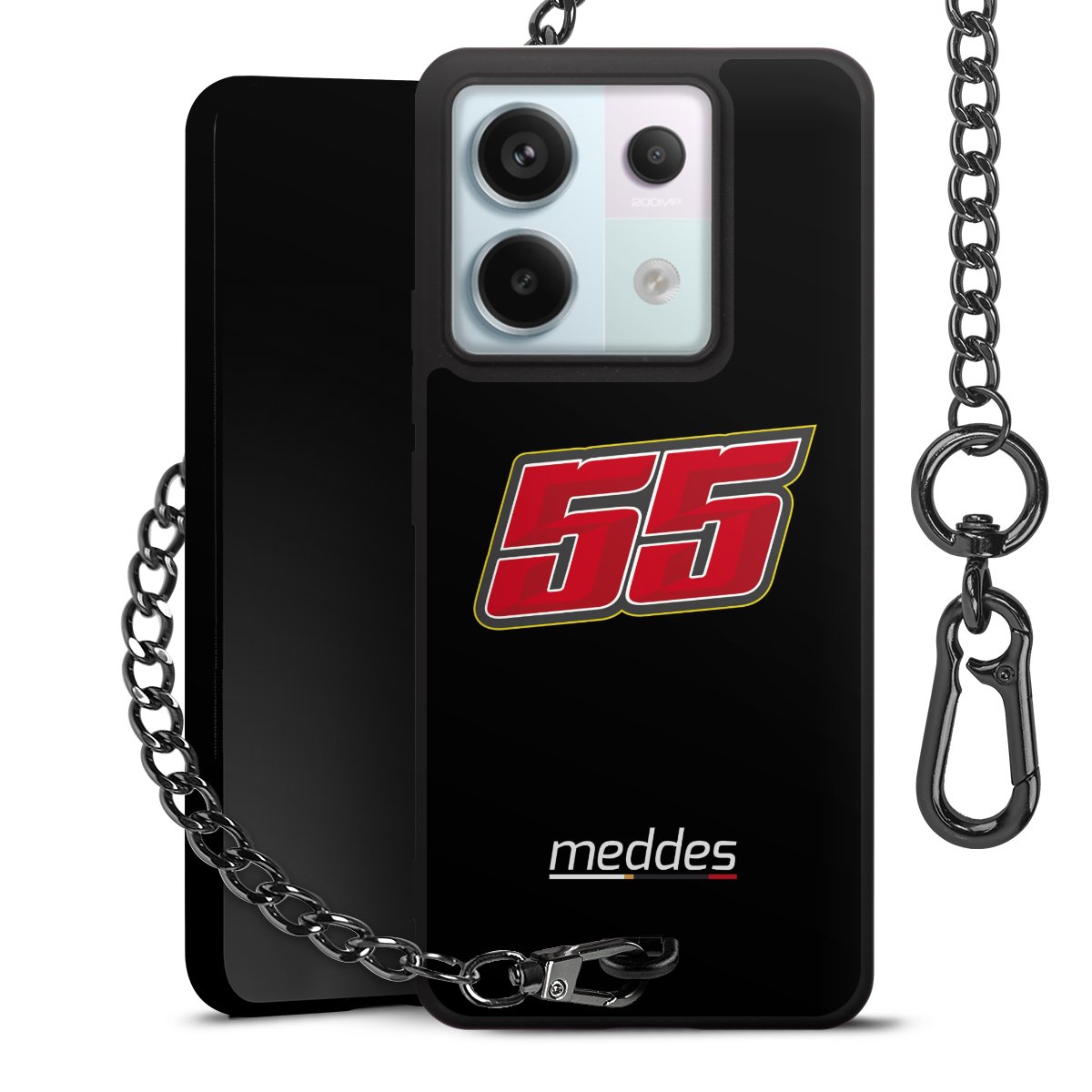 • Mattschwarze Handyhülle mit Metallkette