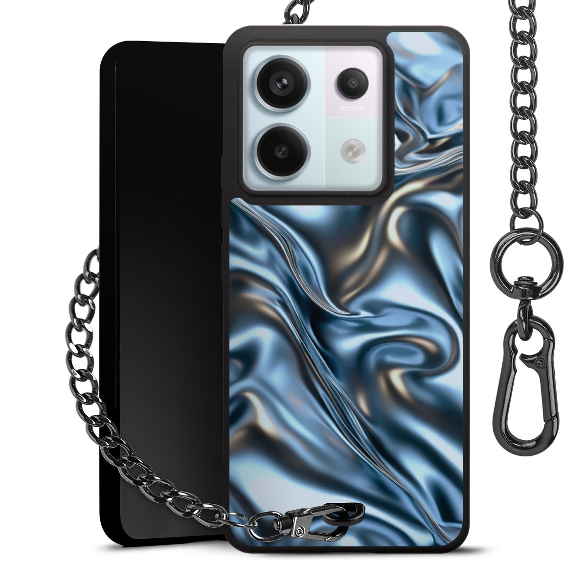 • Mattschwarze Handyhülle mit Metallkette