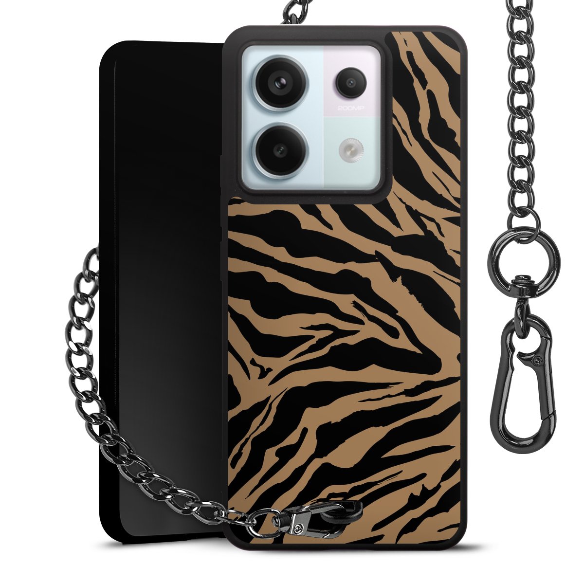 - Mattschwarze Handyhülle mit Metallkette