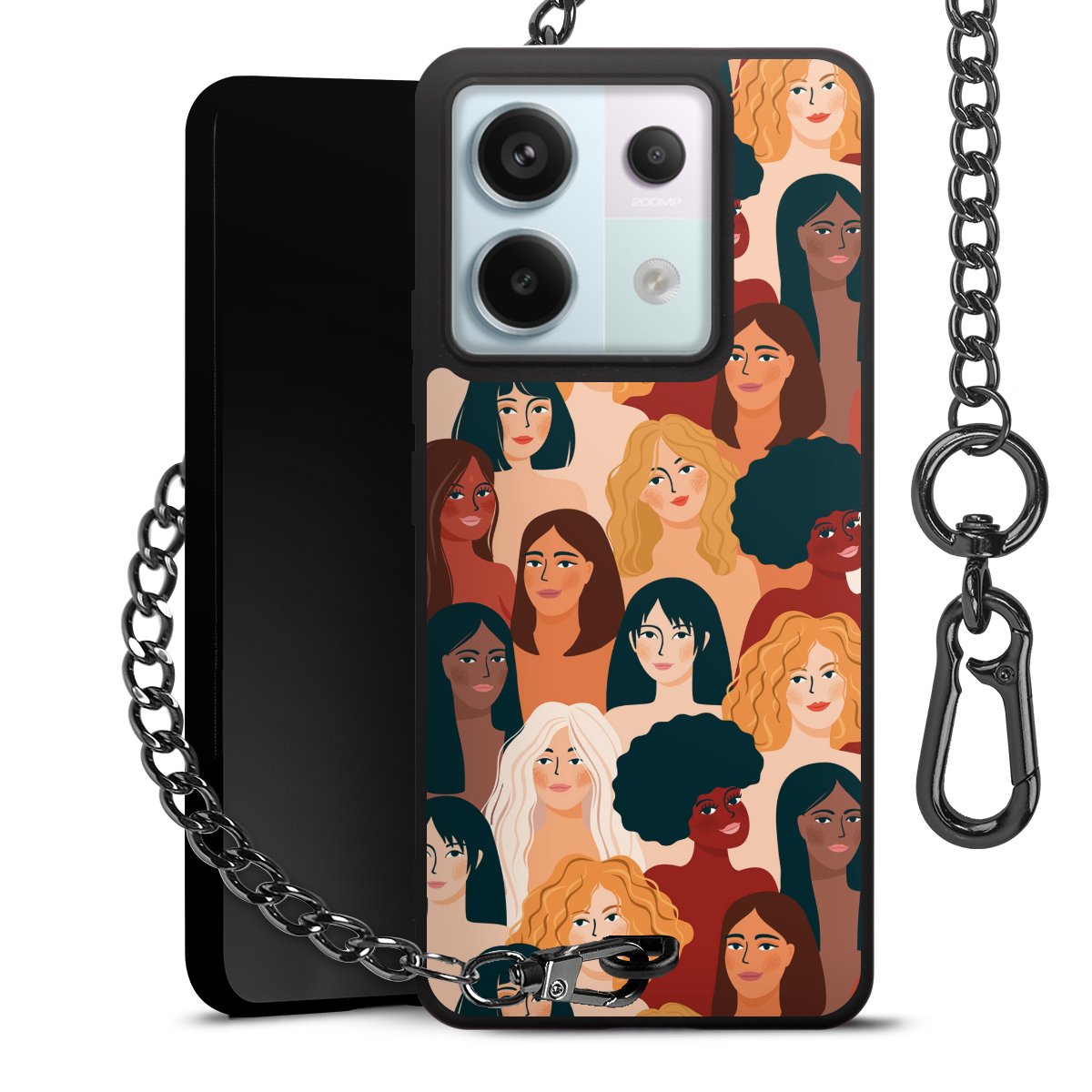 • Mattschwarze Handyhülle mit Metallkette