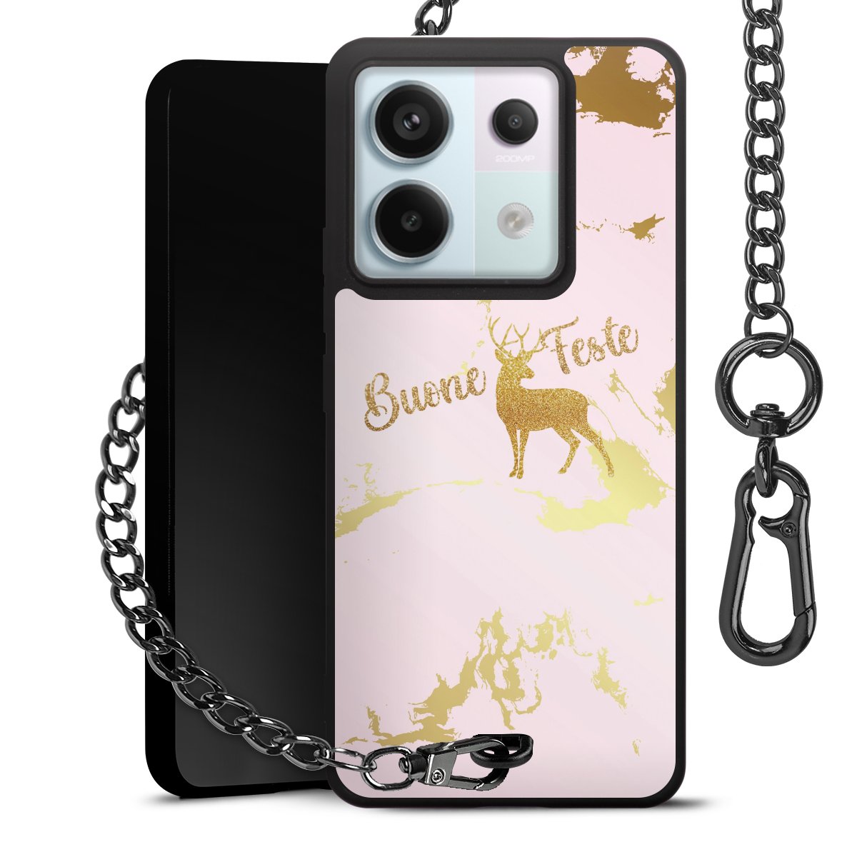 - Mattschwarze Handyhülle mit Metallkette