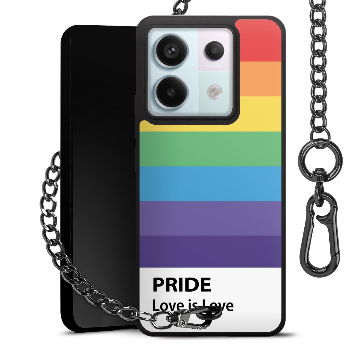 • Mattschwarze Handyhülle mit Metallkette