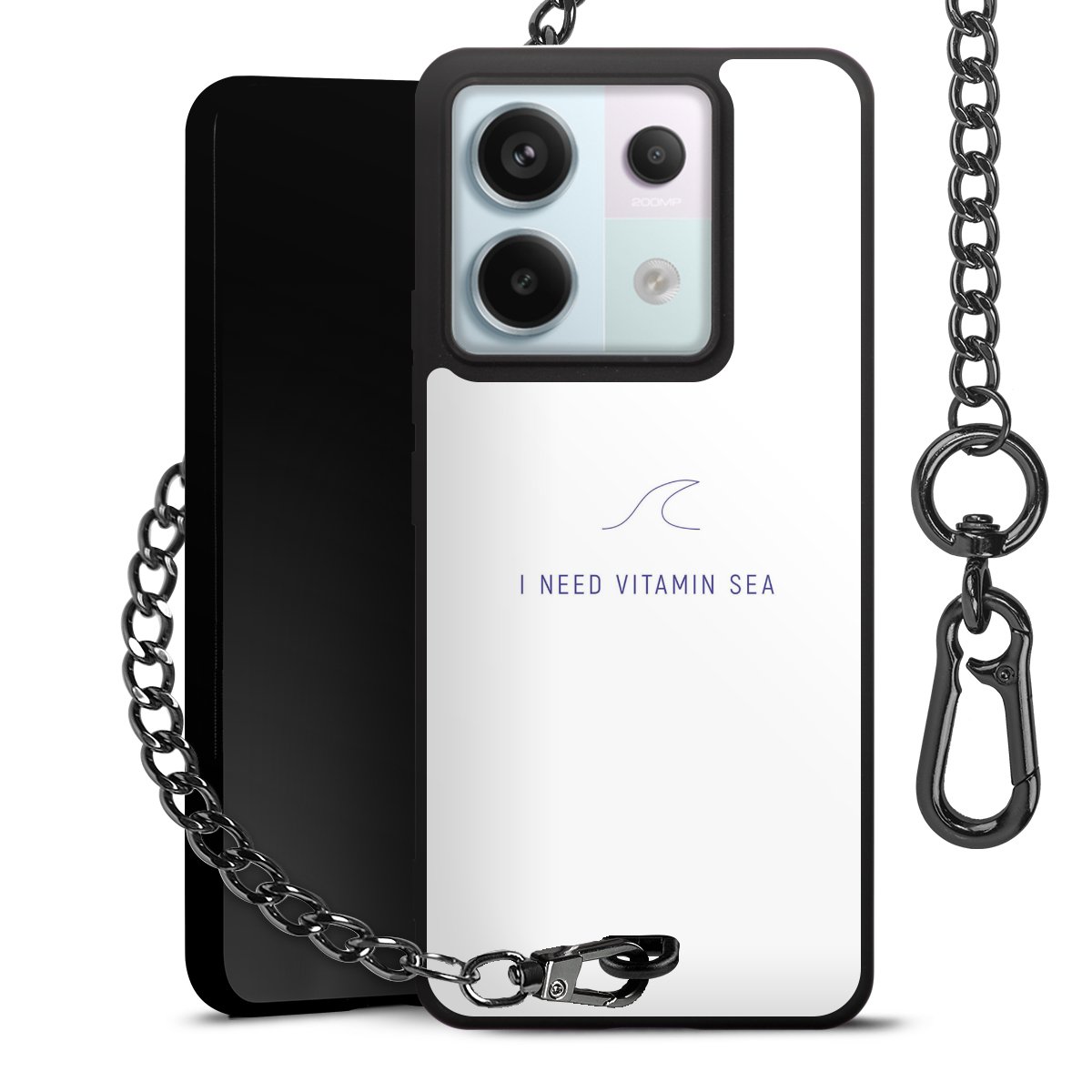 • Mattschwarze Handyhülle mit Metallkette