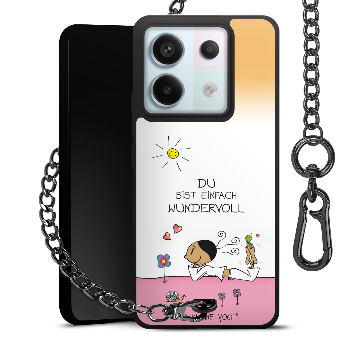 Die mattschwarze Silikon-Handyhülle besteht aus robustem TPU (thermoplastisches Polyurethan). Sie ist flexibel und schützt Dein Smartphone vor Stößen und Kratzern. Die Kette sowie der Karabinerhaken sind aus Metall in Gunmetal-Optik gefertigt. Für dieses Produkt kommen ausschließlich TÜV-geprüfte Materialien zum Einsatz.