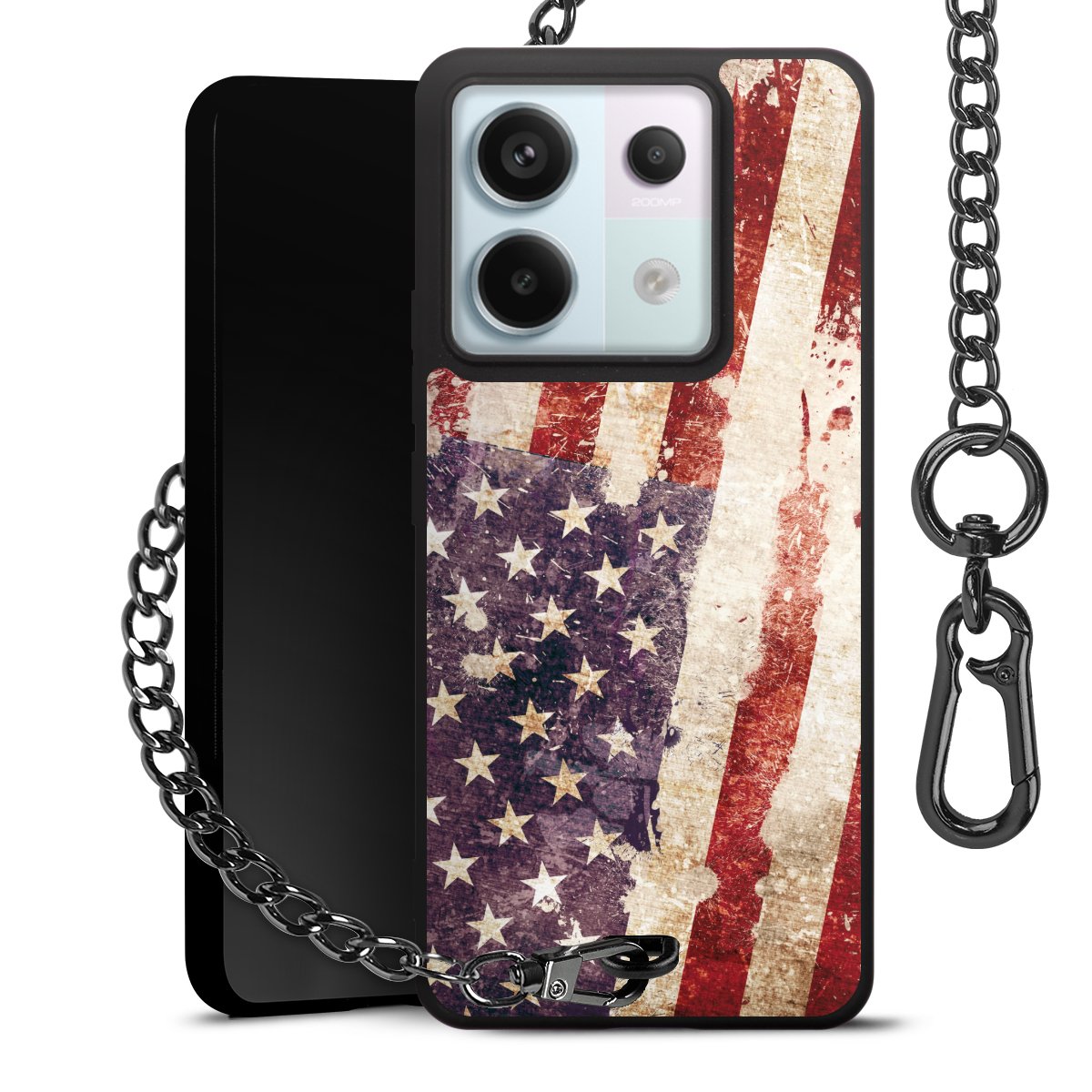 - Mattschwarze Handyhülle mit Metallkette