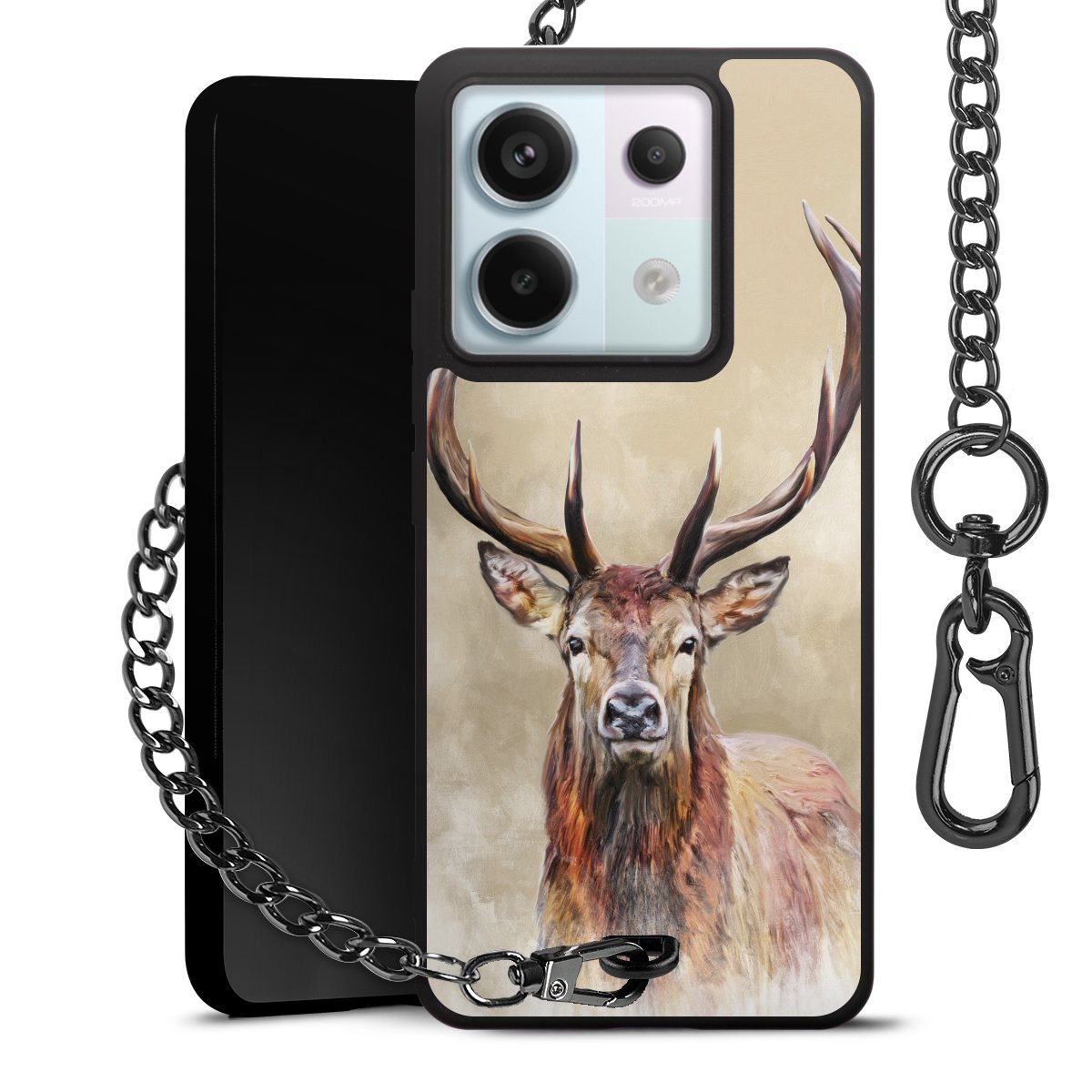 • Mattschwarze Handyhülle mit Metallkette