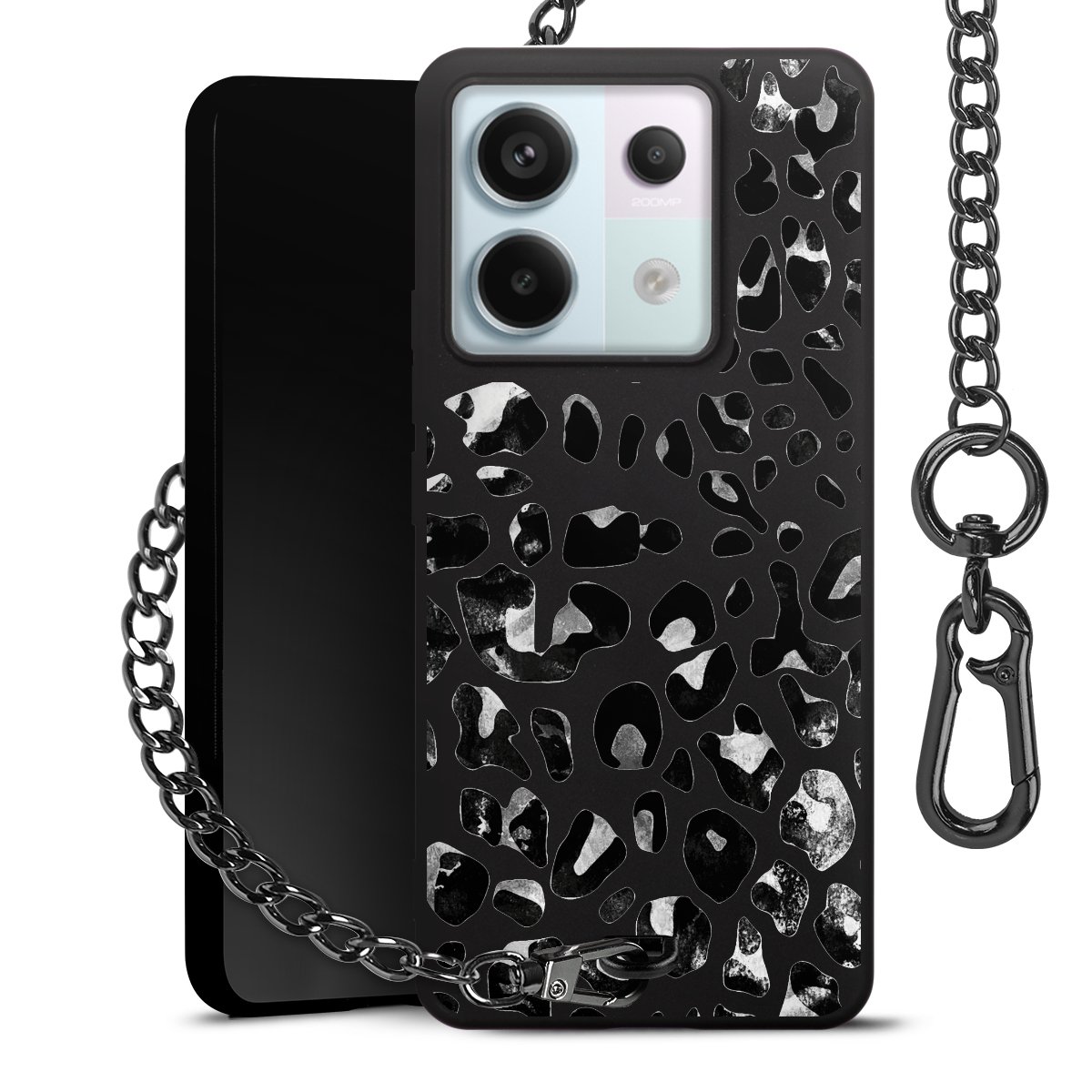 • Mattschwarze Handyhülle mit Metallkette