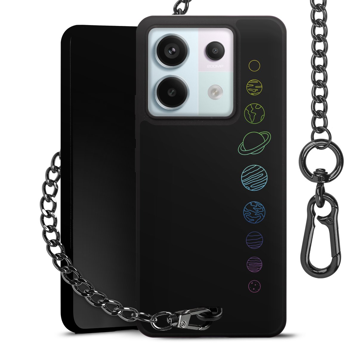 • Mattschwarze Handyhülle mit Metallkette