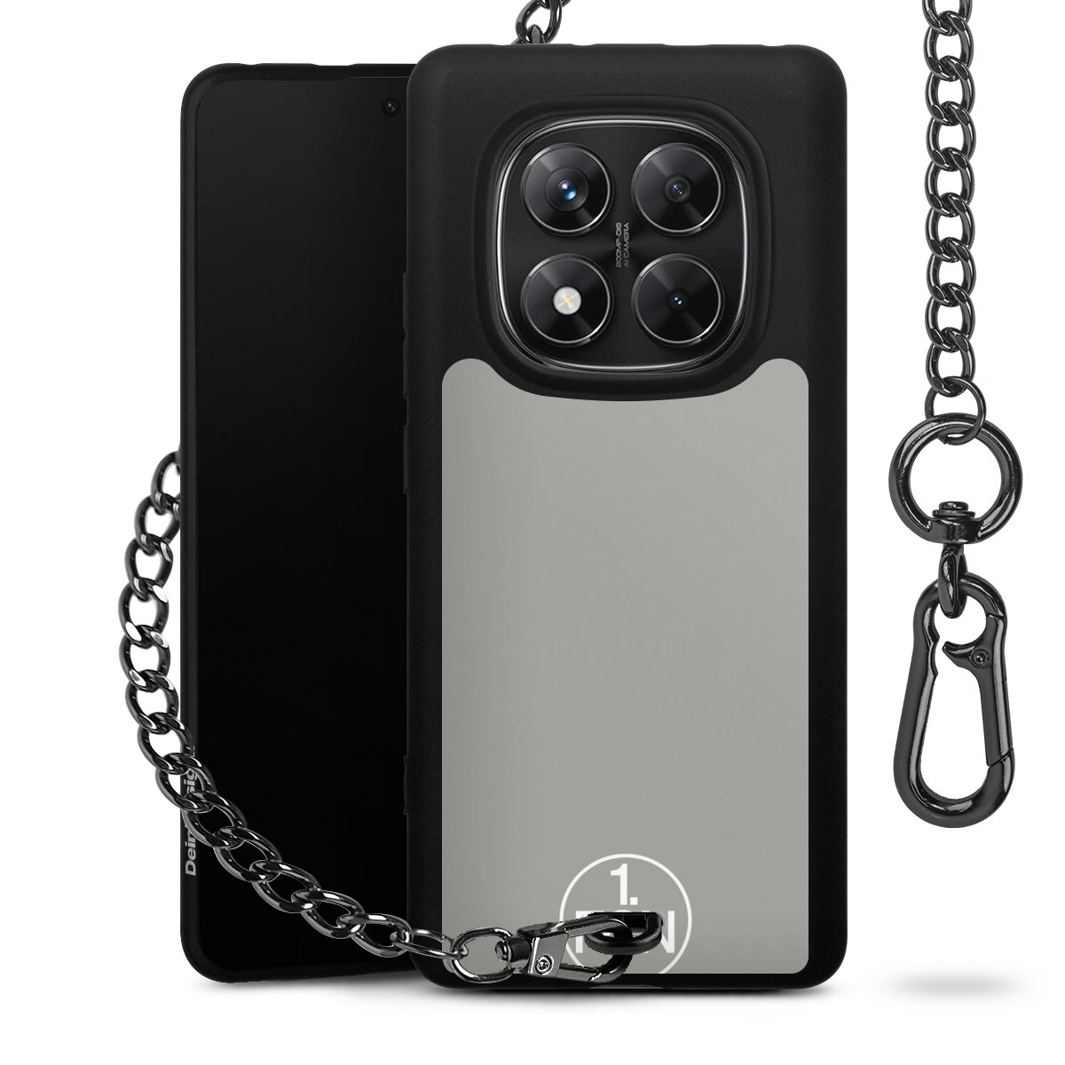 Die mattschwarze Silikon-Handyhülle besteht aus robustem TPU (thermoplastisches Polyurethan). Sie ist flexibel und schützt Dein Smartphone vor Stößen und Kratzern. Die Kette sowie der Karabinerhaken sind aus Metall in Gunmetal-Optik gefertigt. Für dieses Produkt kommen ausschließlich TÜV-geprüfte Materialien zum Einsatz.