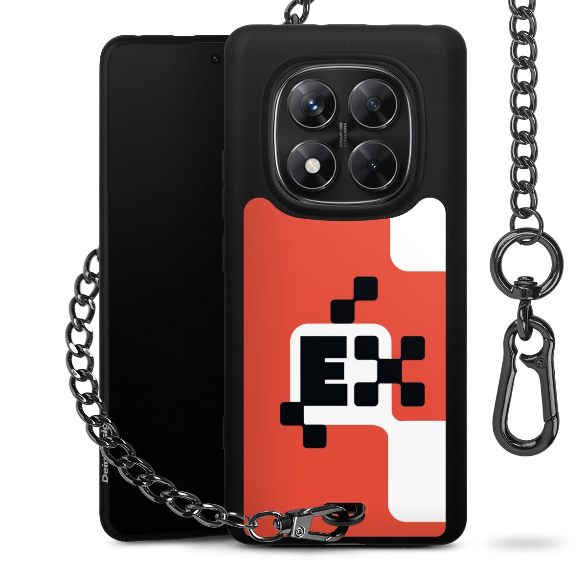 - Mattschwarze Handyhülle mit Metallkette