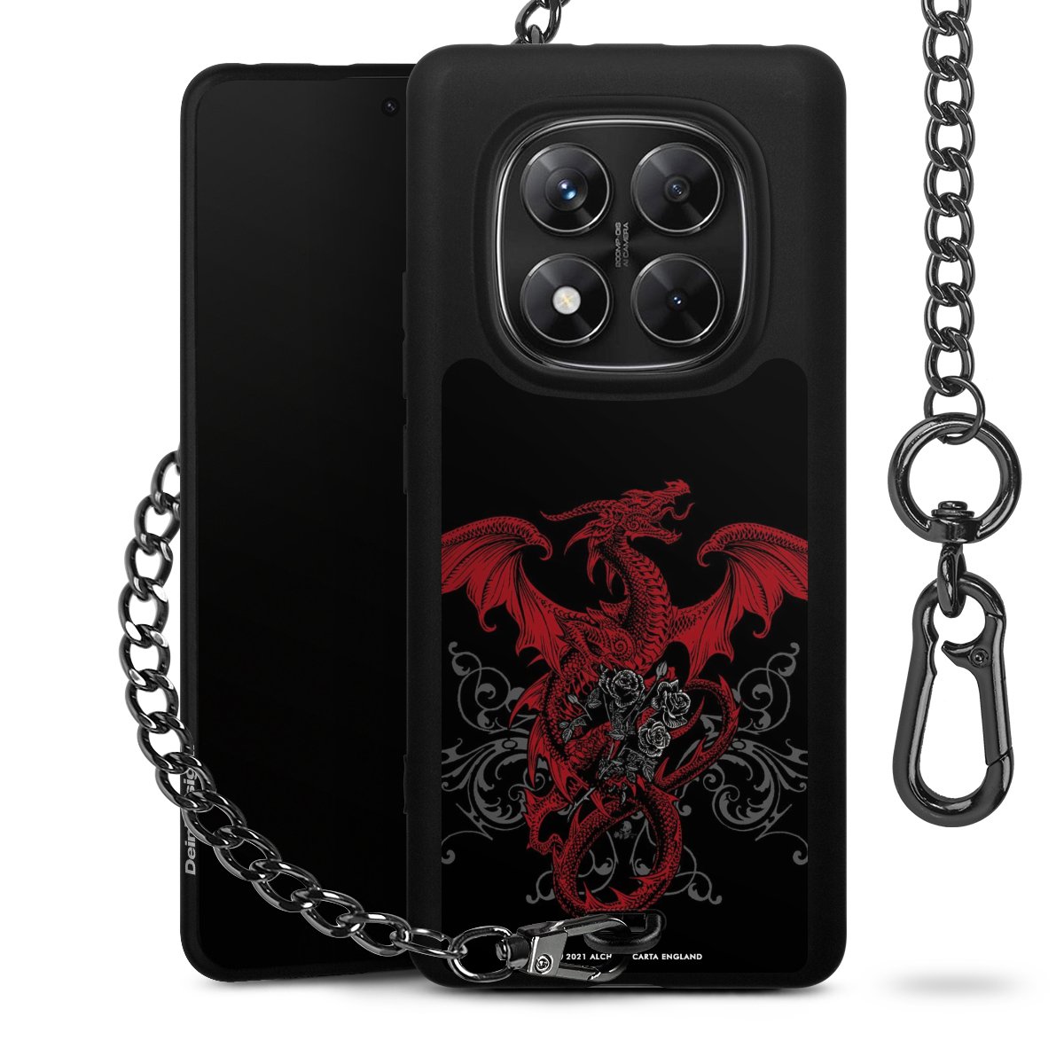 Die mattschwarze Silikon-Handyhülle besteht aus robustem TPU (thermoplastisches Polyurethan). Sie ist flexibel und schützt Dein Smartphone vor Stößen und Kratzern. Die Kette sowie der Karabinerhaken sind aus Metall in Gunmetal-Optik gefertigt. Für dieses Produkt kommen ausschließlich TÜV-geprüfte Materialien zum Einsatz.