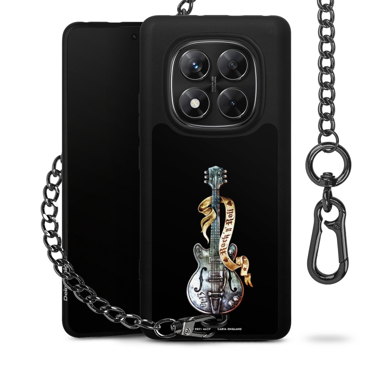 Die mattschwarze Silikon-Handyhülle besteht aus robustem TPU (thermoplastisches Polyurethan). Sie ist flexibel und schützt Dein Smartphone vor Stößen und Kratzern. Die Kette sowie der Karabinerhaken sind aus Metall in Gunmetal-Optik gefertigt. Für dieses Produkt kommen ausschließlich TÜV-geprüfte Materialien zum Einsatz.