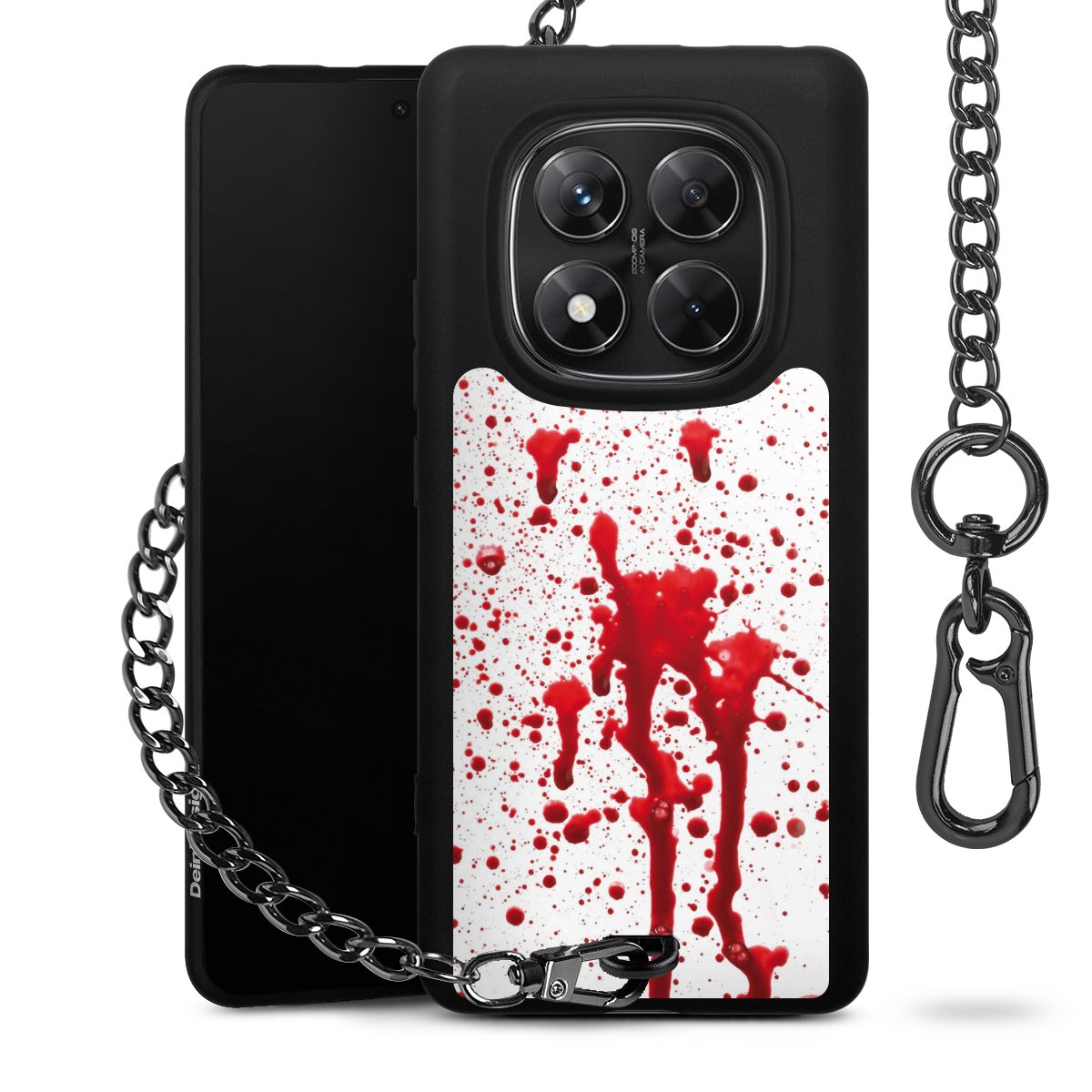 - Mattschwarze Handyhülle mit Metallkette