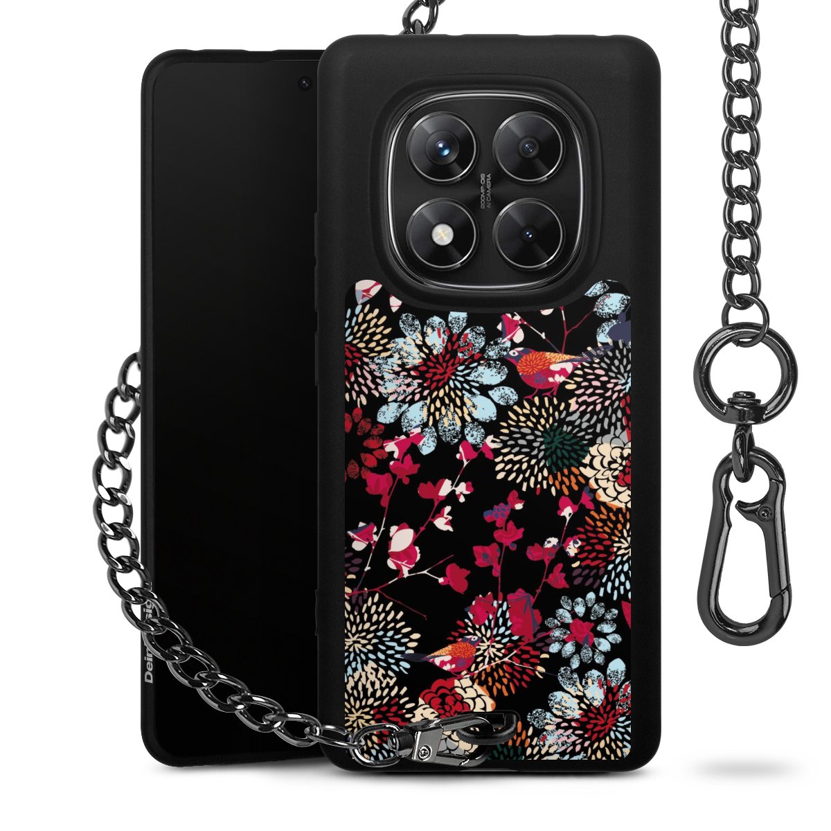 - Mattschwarze Handyhülle mit Metallkette