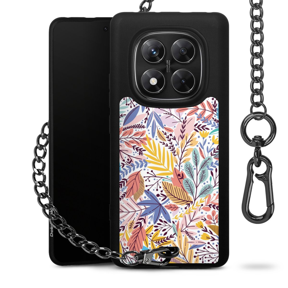 • Mattschwarze Handyhülle mit Metallkette