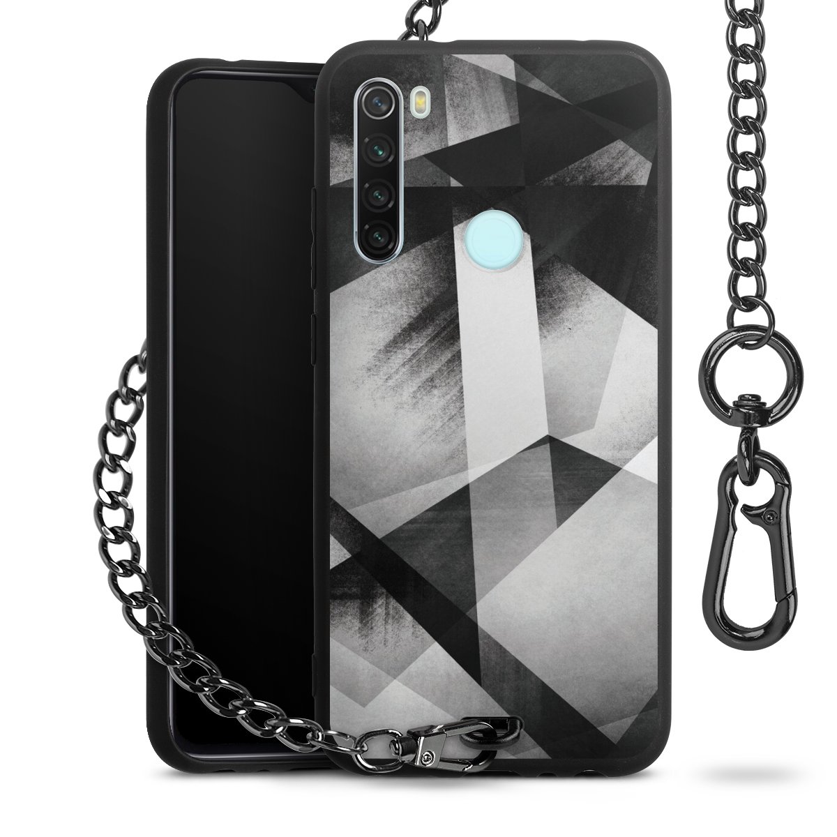 • Mattschwarze Handyhülle mit Metallkette