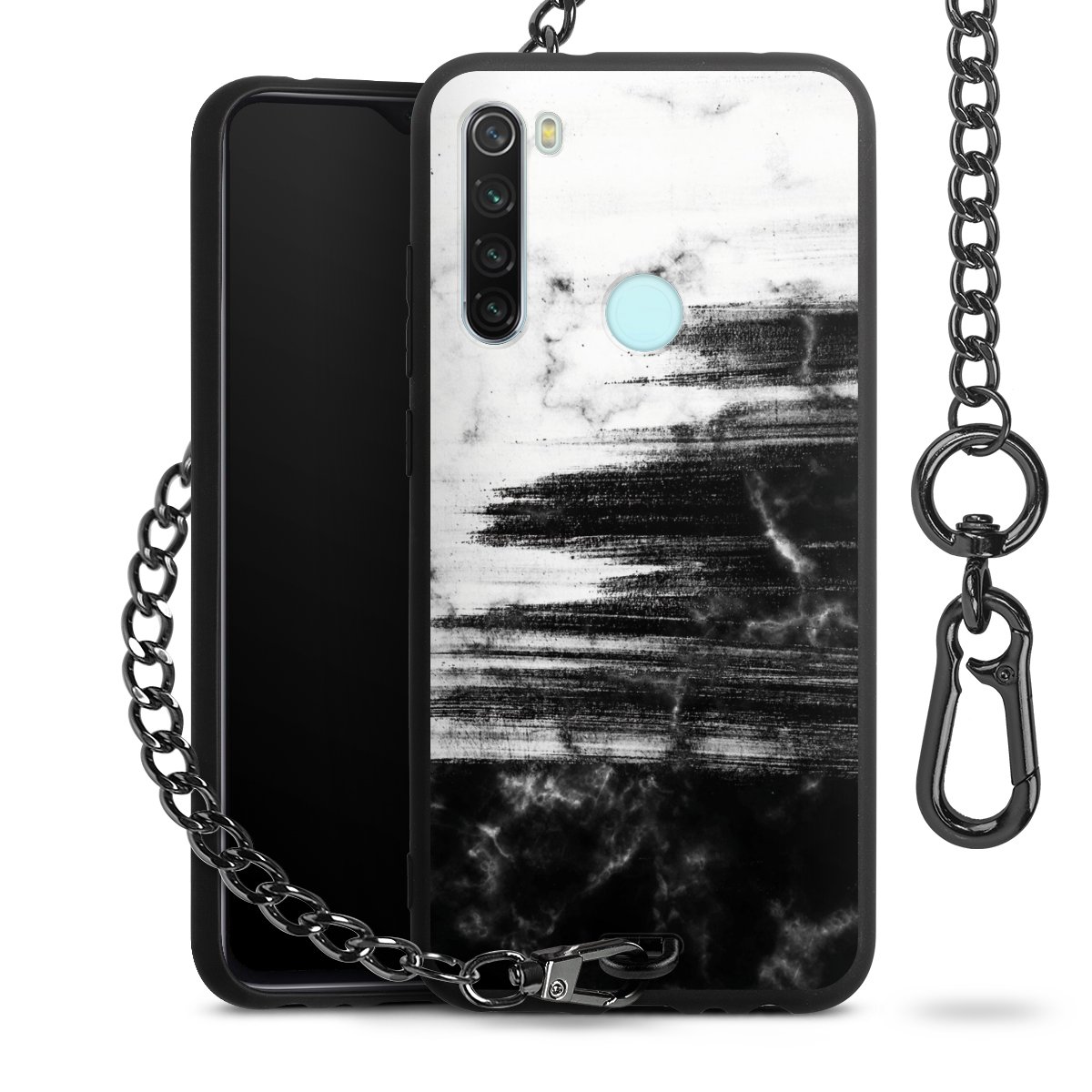 • Mattschwarze Handyhülle mit Metallkette