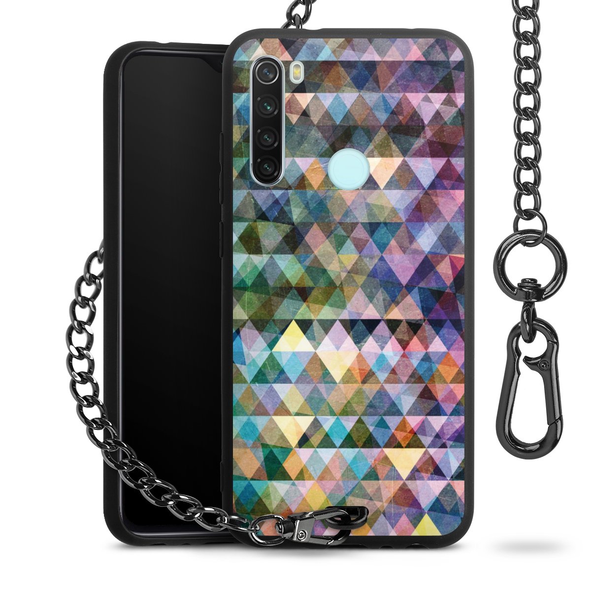 • Mattschwarze Handyhülle mit Metallkette