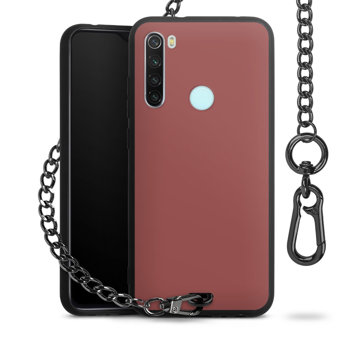 - Mattschwarze Handyhülle mit Metallkette