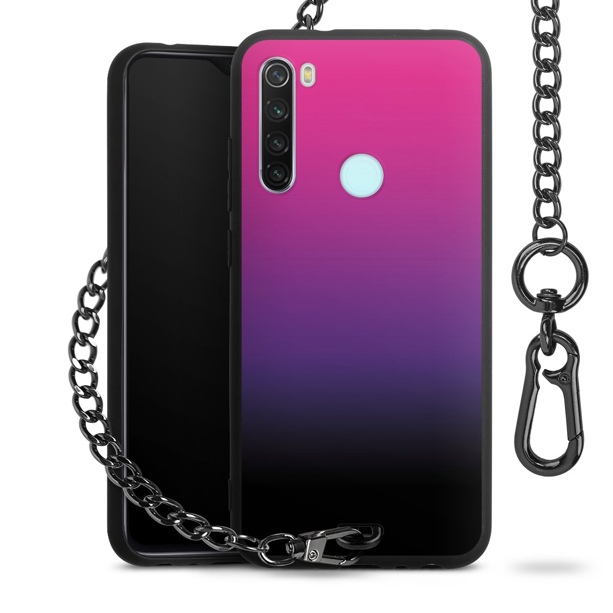 • Mattschwarze Handyhülle mit Metallkette