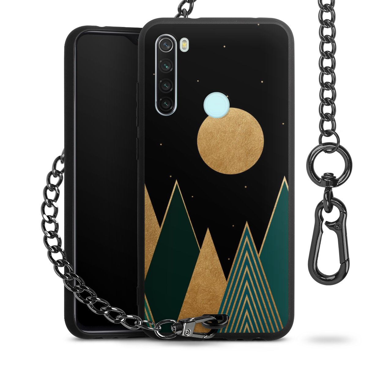 • Mattschwarze Handyhülle mit Metallkette