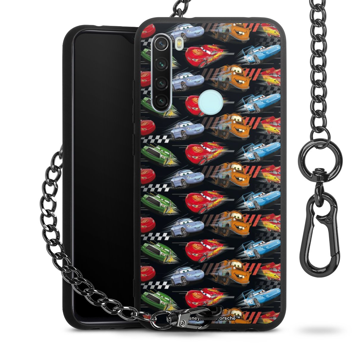 - Mattschwarze Handyhülle mit Metallkette