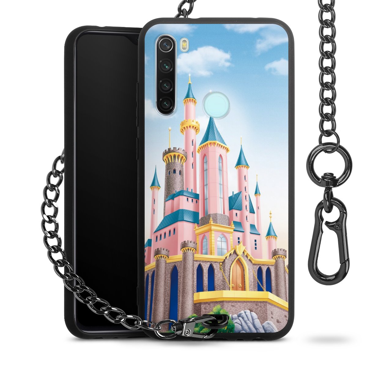 • Mattschwarze Handyhülle mit Metallkette