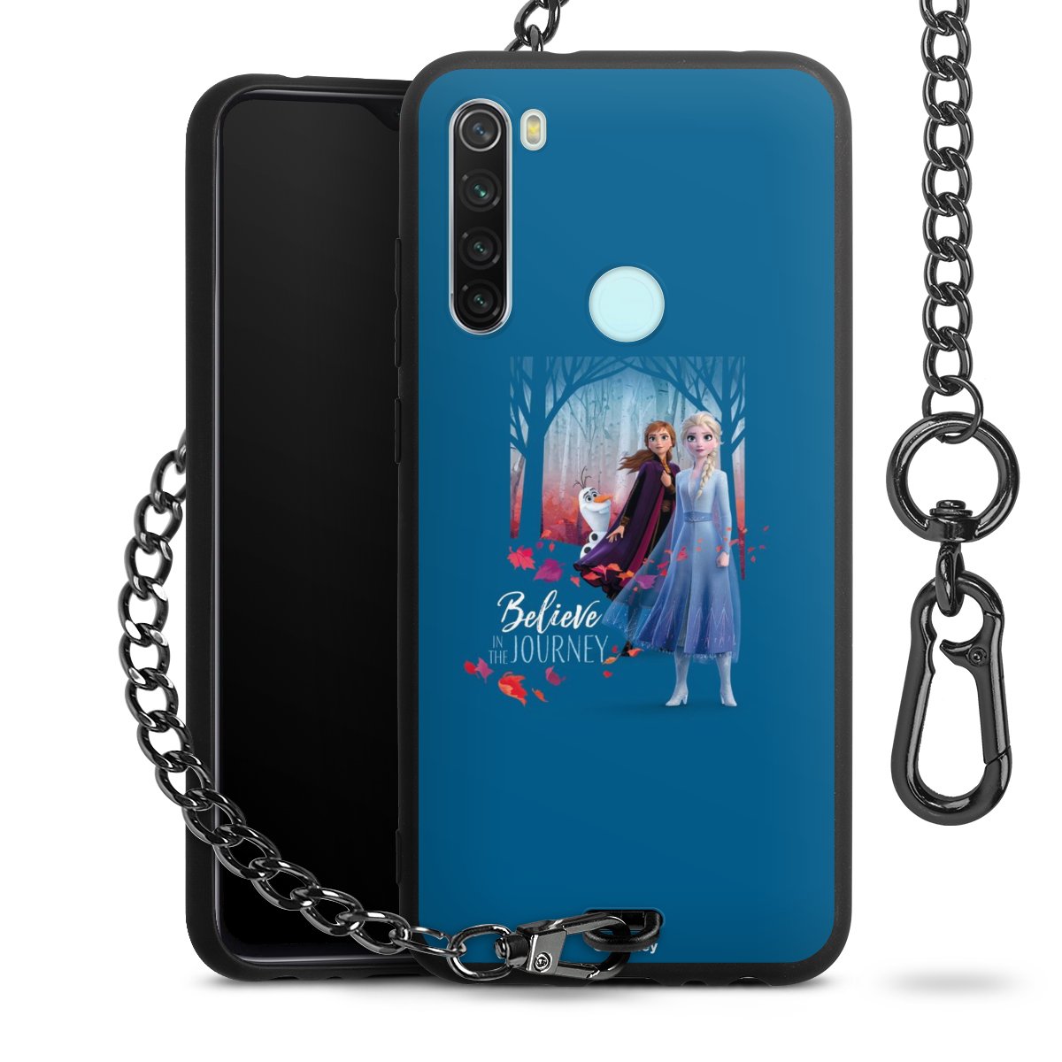 Die Handyhülle verfügt über eine mittig am unteren Rand platzierte Öse, an der die Metallkette stabil befestigt ist. Bestelle die Hülle einfach für Dein Smartphone-Modell, dann passt sie wie angegossen und Du brauchst sie bloß einmal anzudrücken. Handy in die Tasche, Karabiner an den Hosenbund – schon kann die Party starten.