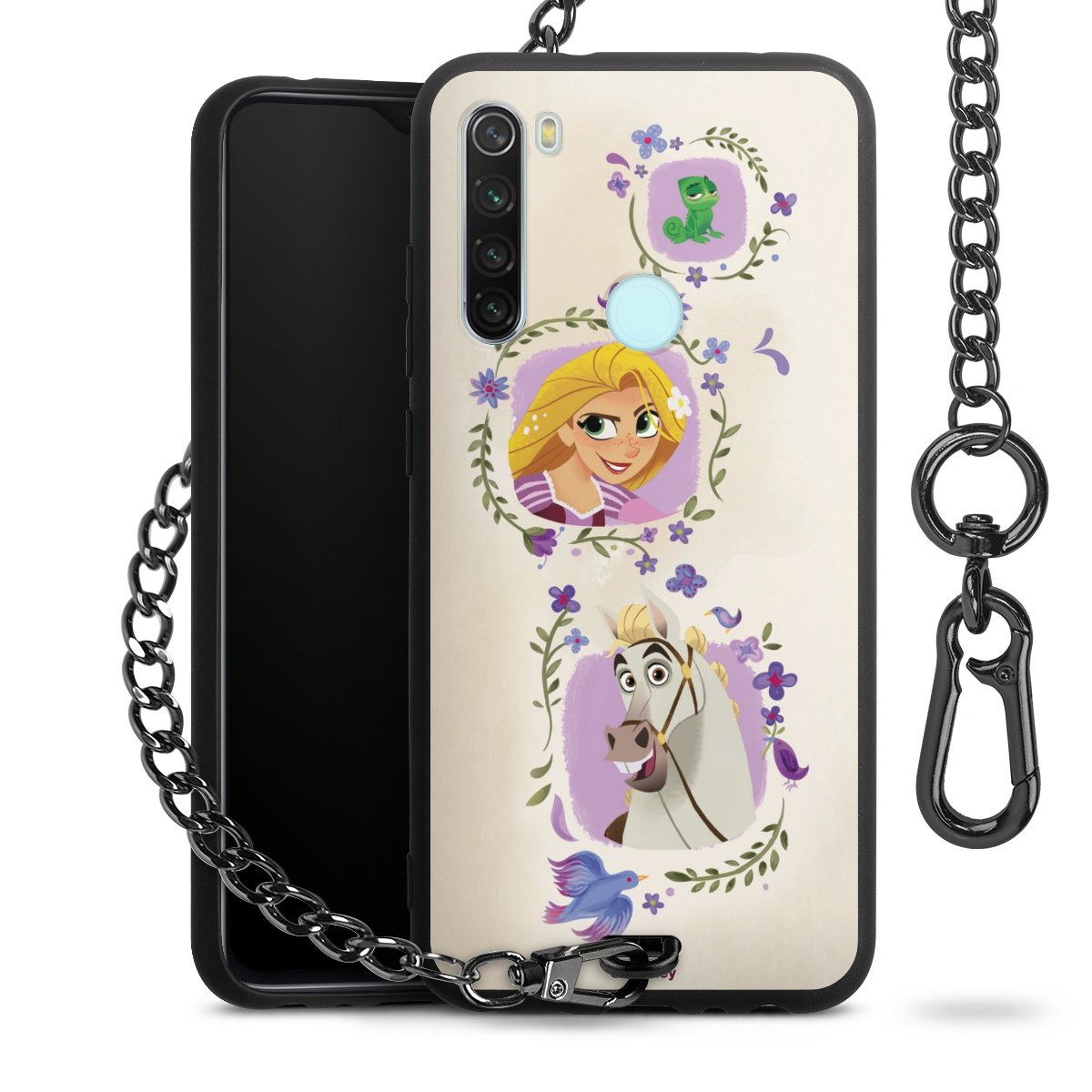 • Mattschwarze Handyhülle mit Metallkette
