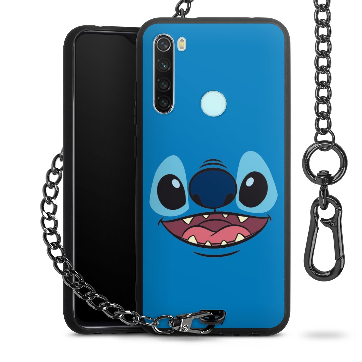 Die Handyhülle verfügt über eine mittig am unteren Rand platzierte Öse, an der die Metallkette stabil befestigt ist. Bestelle die Hülle einfach für Dein Smartphone-Modell, dann passt sie wie angegossen und Du brauchst sie bloß einmal anzudrücken. Handy in die Tasche, Karabiner an den Hosenbund – schon kann die Party starten.