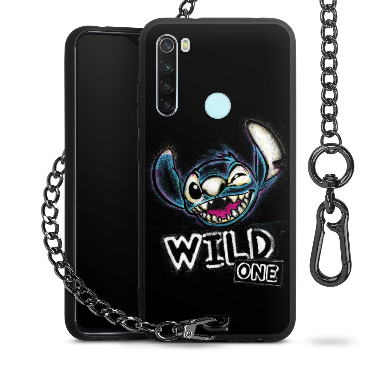 Die Handyhülle verfügt über eine mittig am unteren Rand platzierte Öse, an der die Metallkette stabil befestigt ist. Bestelle die Hülle einfach für Dein Smartphone-Modell, dann passt sie wie angegossen und Du brauchst sie bloß einmal anzudrücken. Handy in die Tasche, Karabiner an den Hosenbund – schon kann die Party starten.