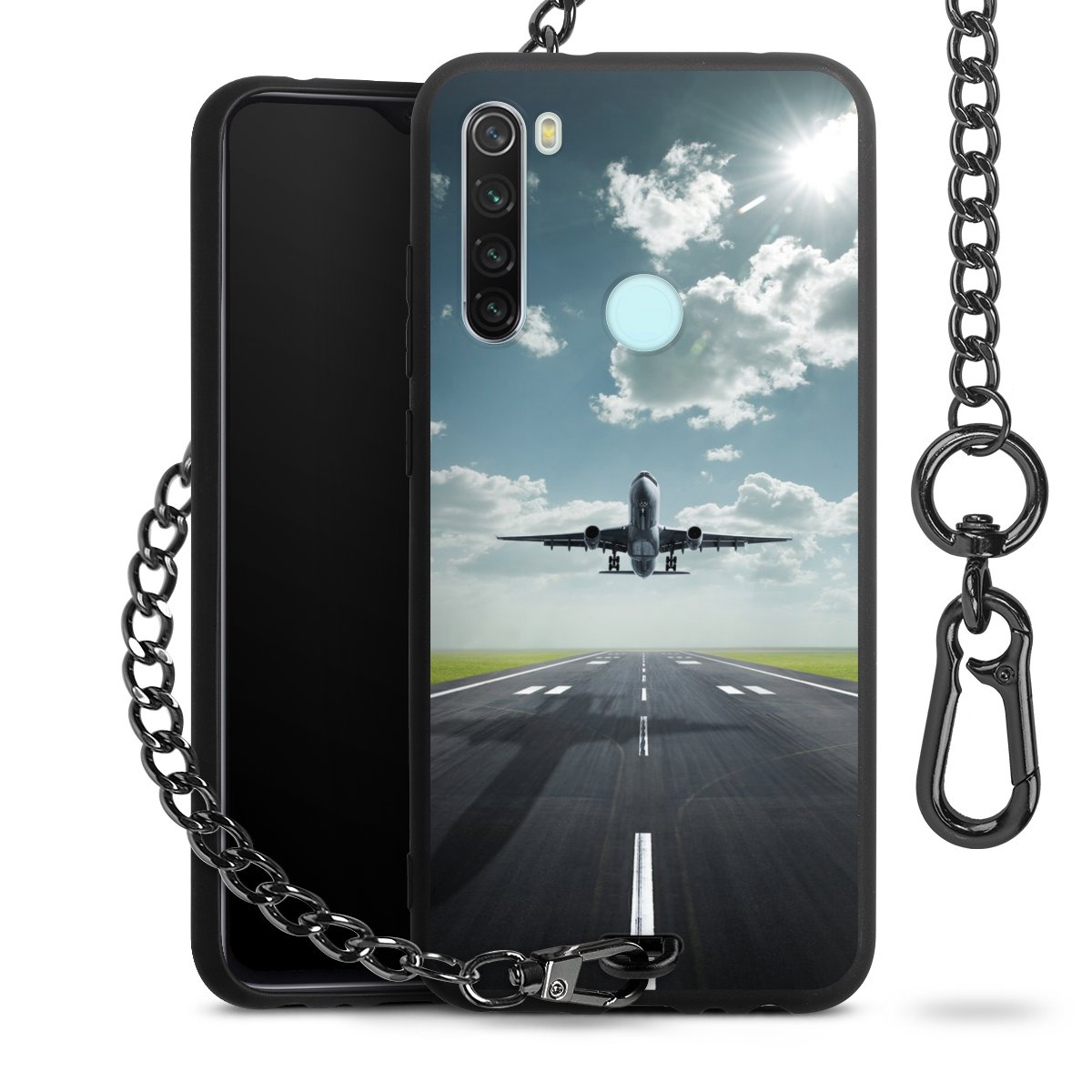 - Mattschwarze Handyhülle mit Metallkette