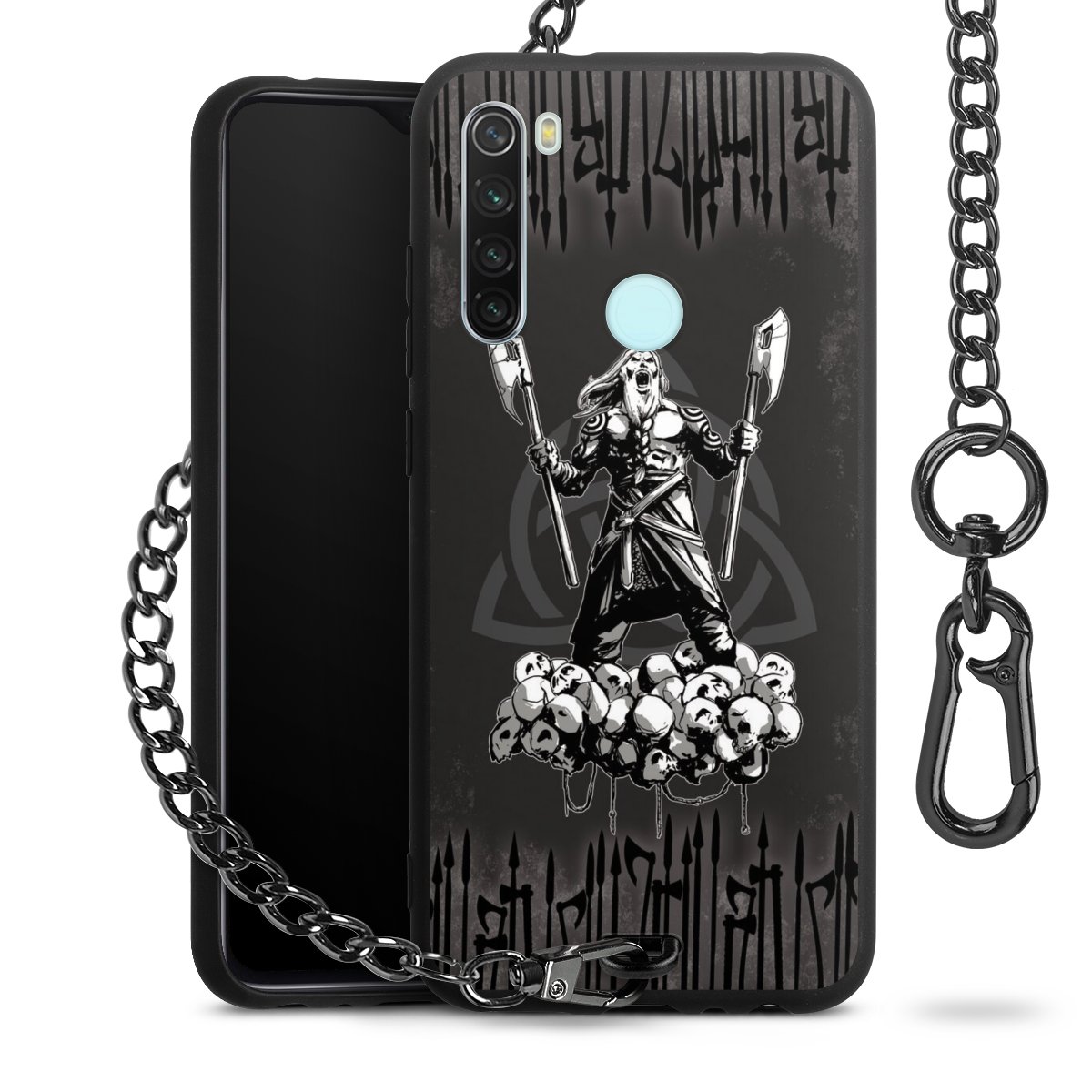 Die mattschwarze Silikon-Handyhülle besteht aus robustem TPU (thermoplastisches Polyurethan). Sie ist flexibel und schützt Dein Smartphone vor Stößen und Kratzern. Die Kette sowie der Karabinerhaken sind aus Metall in Gunmetal-Optik gefertigt. Für dieses Produkt kommen ausschließlich TÜV-geprüfte Materialien zum Einsatz.